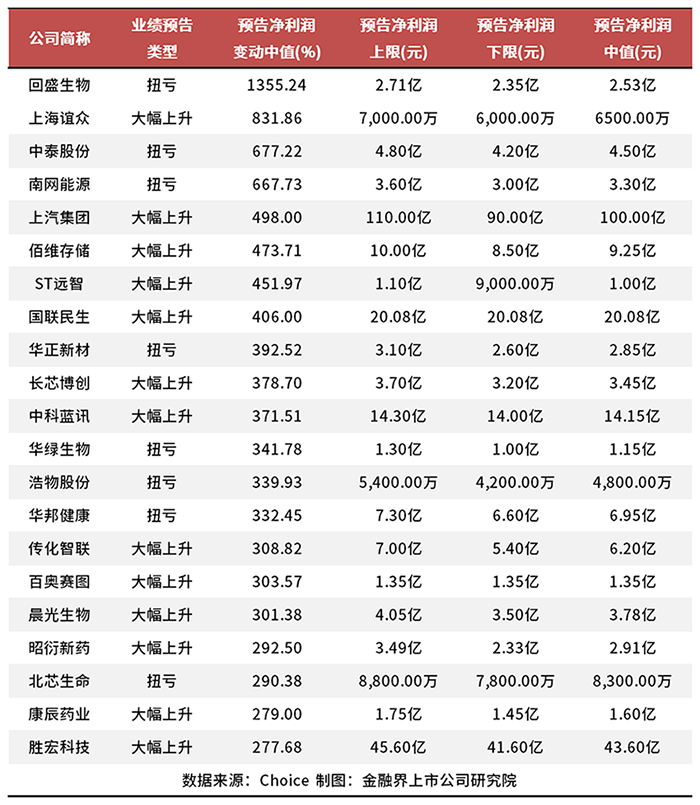 在业绩预喜公司中,有100家净利润增幅(以中值计算,下同)超过100%,17家增幅达到300%以上。电子、半导体、新能源及有色金属等行业的上市公司业绩表现较为突出。